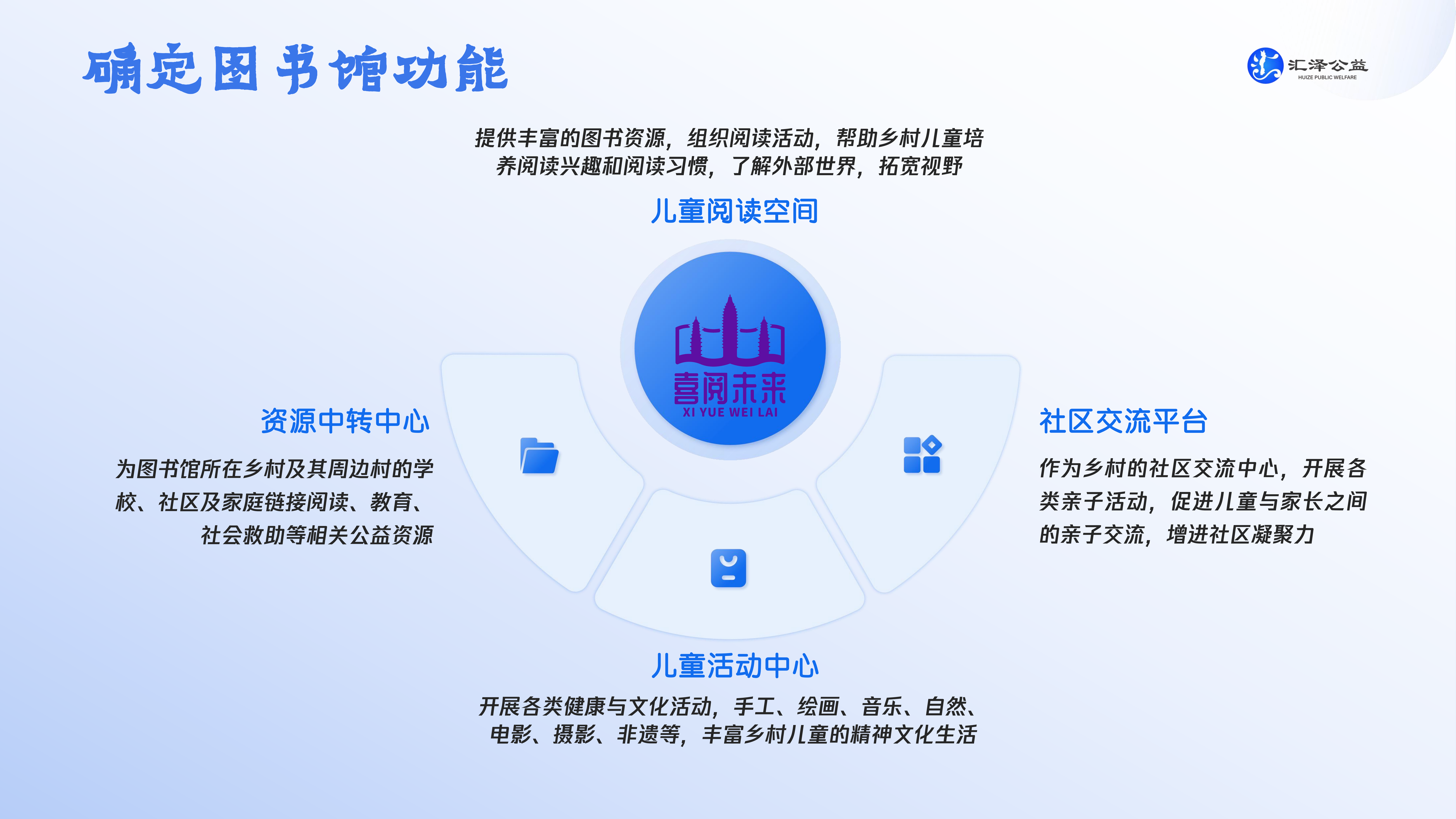 图书馆现有藏书6000余册,覆盖各年龄段读者需求。日常以阅读推广活动提升儿童阅读兴趣与能力,补充乡村教育资源缺口,除免费借阅服务外,更致力于拓展孩子视野与能力——邀请社会各界优秀老师及专业人士,定期开展趣味课堂、专题讲座、周末影院、读书会与兴趣小组等活动,鼓励孩子们参与活动策划组织。